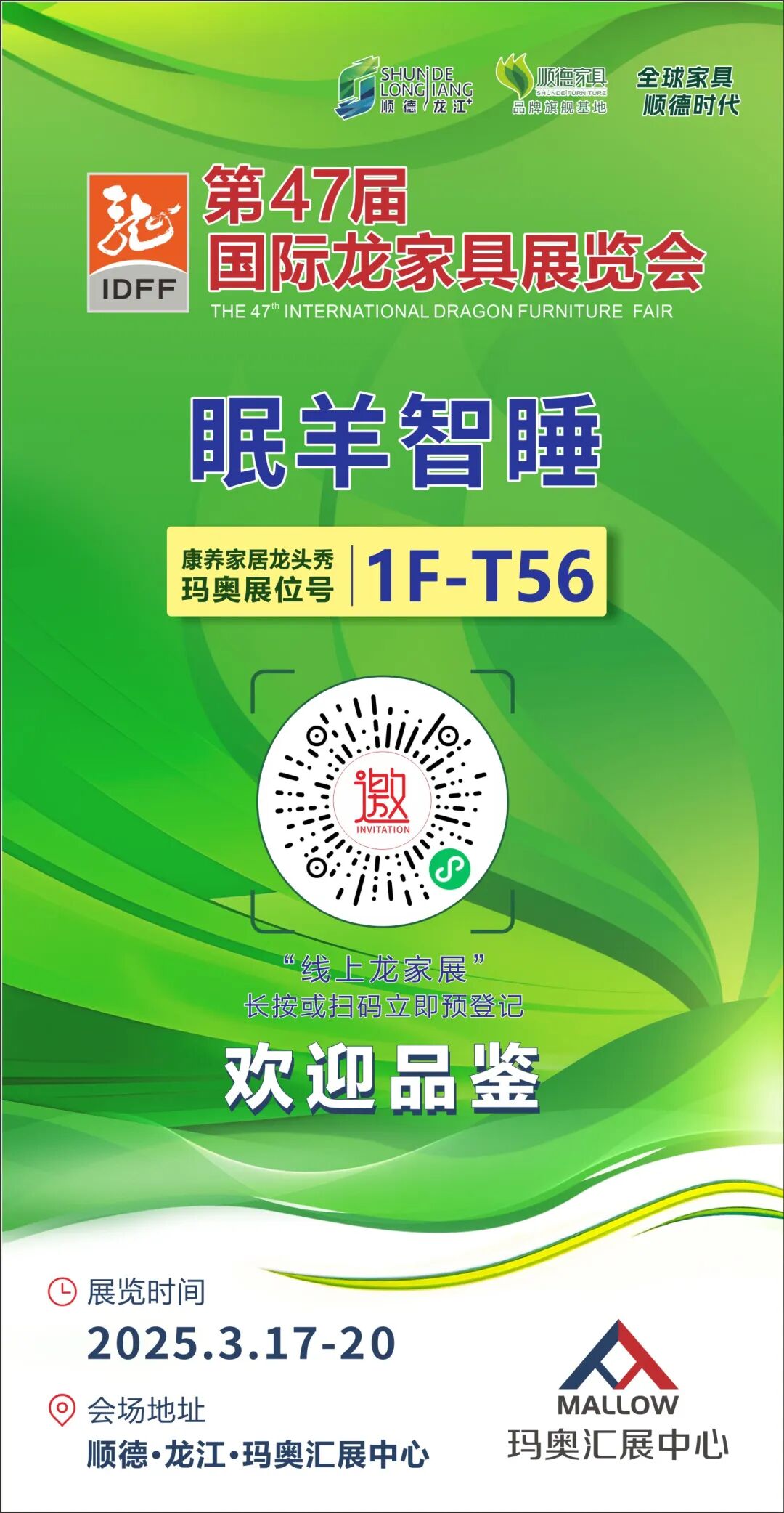 3月17日-20日,第47屆國際龍家展,瑪奧匯展中心中庭將成為焦點匯聚之地,富士康旗下國創(chuàng)匯康生產(chǎn)制造的“ 眠羊智睡”生產(chǎn)的一系列全新產(chǎn)品,強勢登陸這場家居盛會!